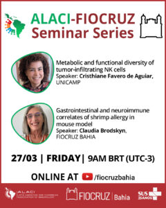 No dia 27 de março (sexta-feira) acontece o seminário “ALACI-FIOCRUZ Seminar Series”. O evento é gratuito, será realizado online e transmitido pelo canal da Fiocruz Bahia no YouTube.
