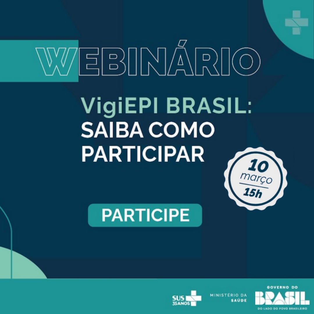 Hoje, 10 de março, às 15h, acontece o webinário “VigiEPI Brasil: Saiba como participar”, que apresentará informações e orientações sobre o edital do programa, além de esclarecer dúvidas sobre o processo de inscrição e participação.