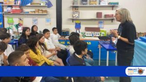 A imunologista Claudia Brodskyn (Fiocruz-BA) ministrou a palestra “Discutindo vacinas e saúde na escola”, com alunos da 5ª série do ensino fundamental na Escola Municipal Vereador Antônio Alípio da Silva.
