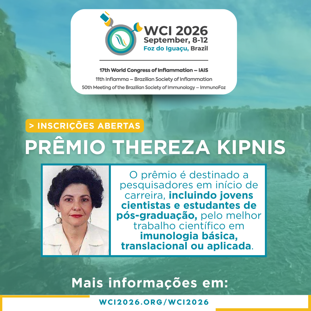 O Prêmio Thereza Kipnis é concedido pela Sociedade Brasileira de Imunologia (SBI) a pesquisadores de destaque em início de carreira, incluindo jovens pesquisadores e estudantes de pós-graduação.