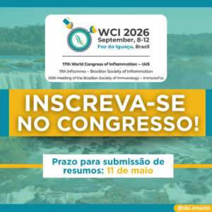 Se você é pesquisador, estudante ou profissional da área, já pode submeter seu trabalho ao congresso, que reúne três grandes eventos científicos: o 17th World Congress of Inflammation (IAIS), o 11th Inflamma – Brazilian Society of Inflammation e o 50th Annual Meeting of the Brazilian Society of Immunology – ImmunoFoz.