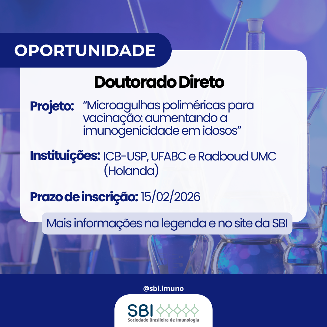 Doutorado Direto no projeto temático “Microagulhas poliméricas para vacinação: aumentando a imunogenicidade em idosos”