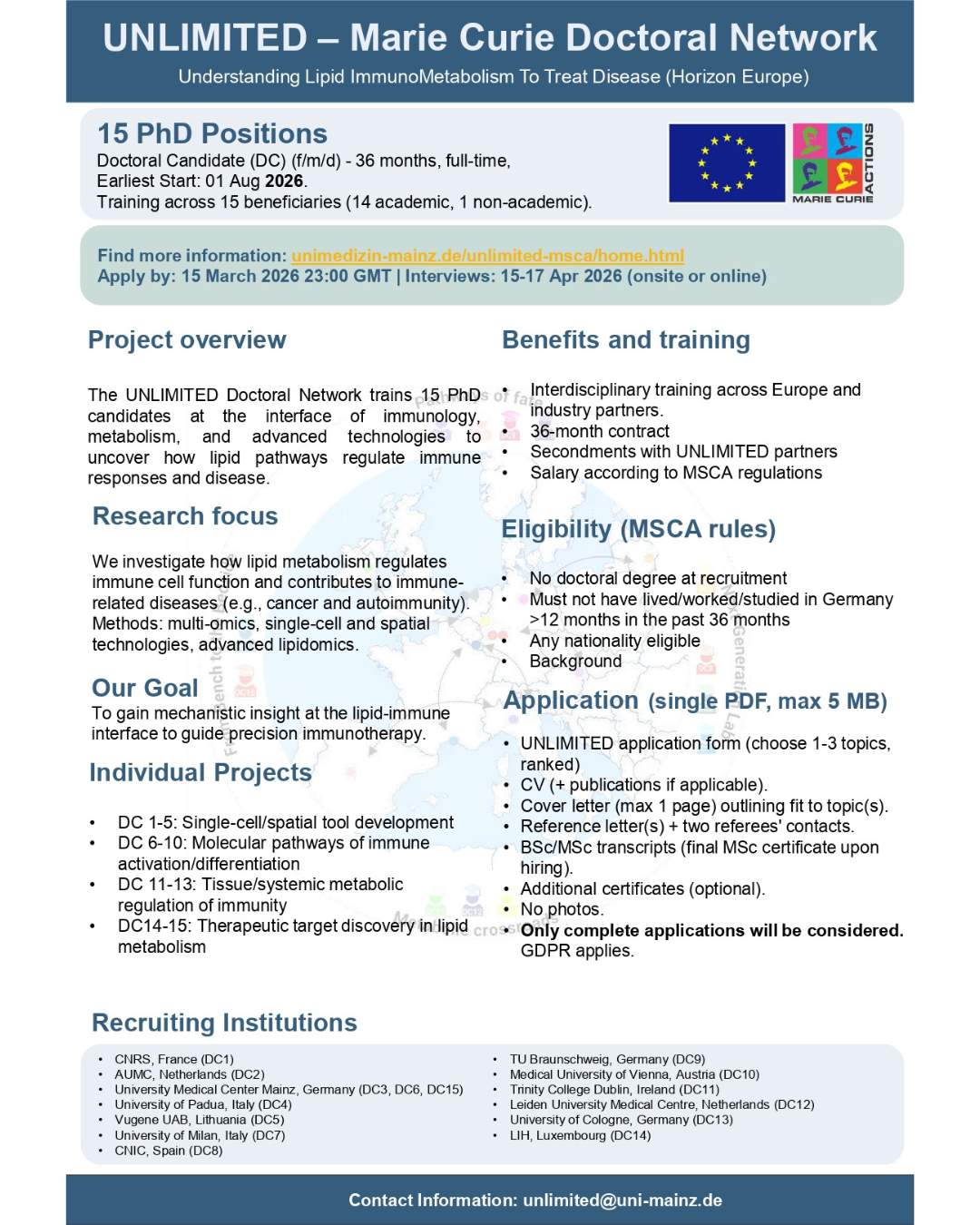 Estão abertas as candidaturas para 15 vagas de doutorado na rede internacional UNLIMITED – Marie Curie Doctoral Network, financiada pelo programa Horizon Europe.